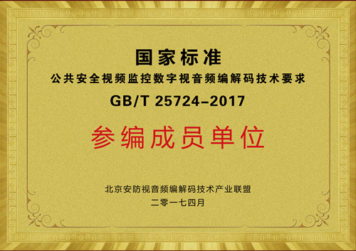 国家标准公共安全视频监控数字视音频编解码技术要求参编成员单位