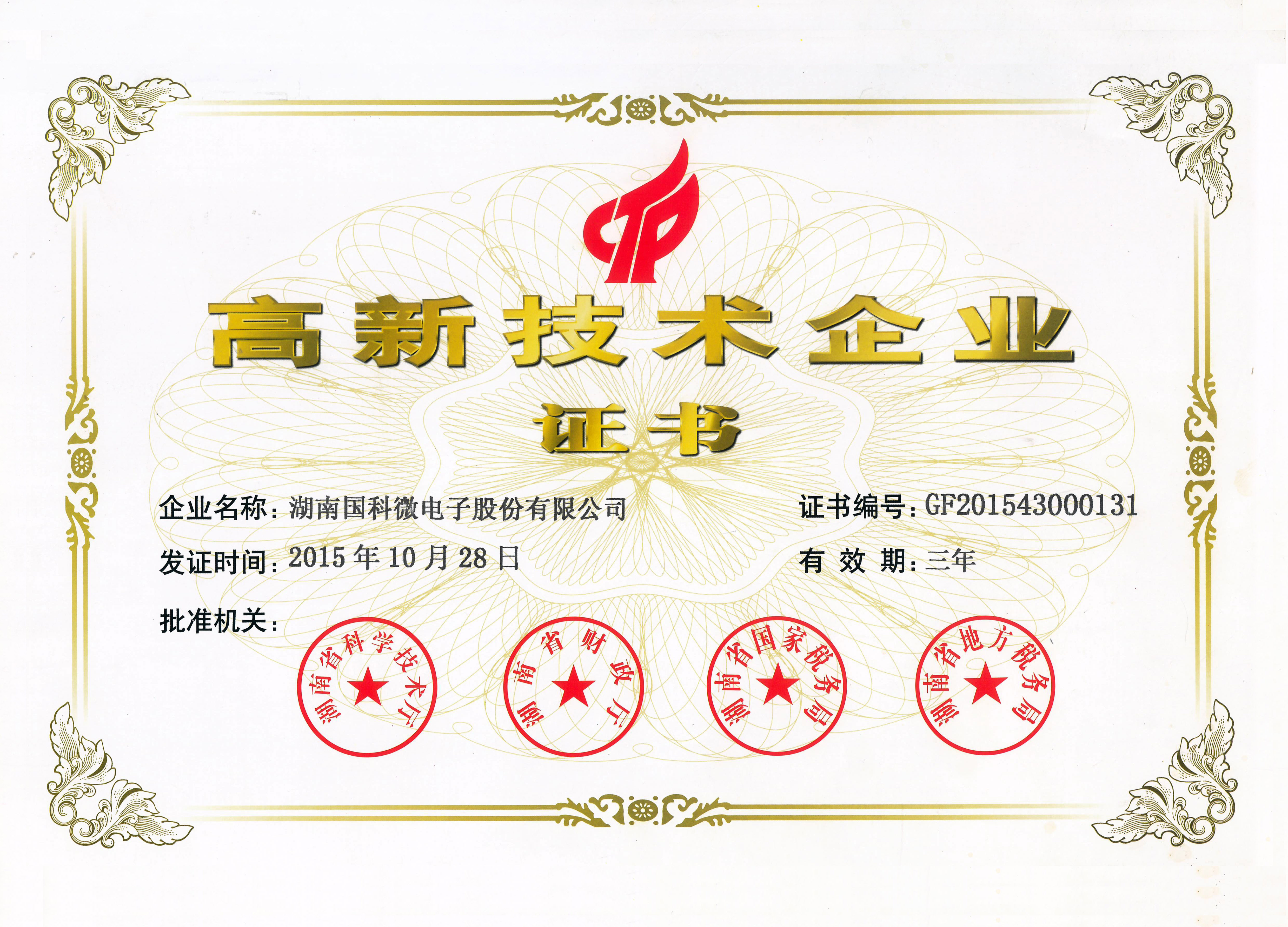 高新技术企业证书